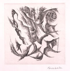 難波田龍起 Tatsuoki NAMBATA W002 《古代を想う B》(単色刷り) 1995年 銅版(単色刷り) 15.0×15.0cm Ed.6/35〜35/35 サインあり ◆《難波田龍起銅版画集 古代を想う》B版・C版の中の1点。 |