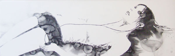 君島彩子 Ayako KIMISHIMA "LISTEN" 2012年 水彩紙、墨 47.0x150.0cm サインあり |