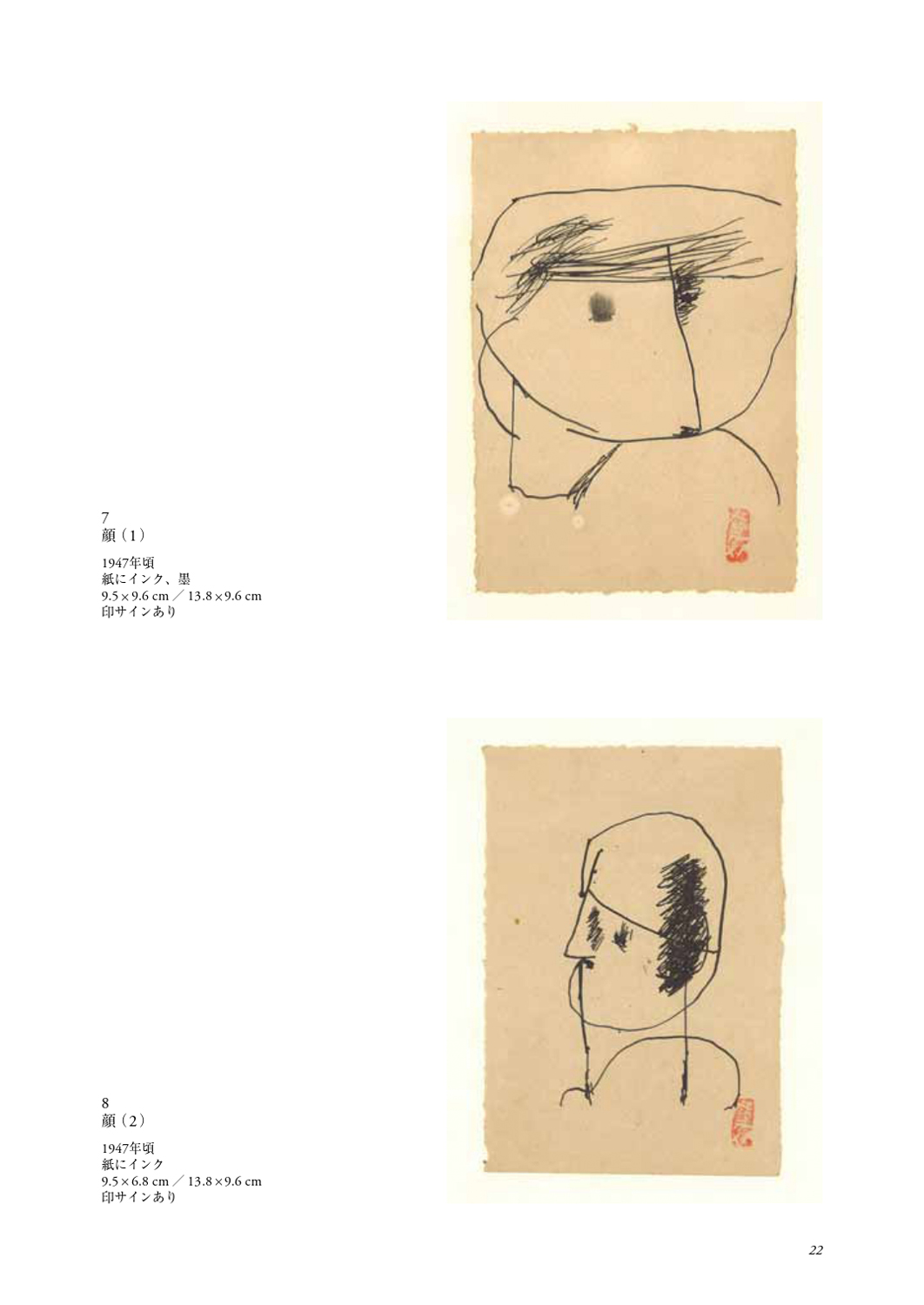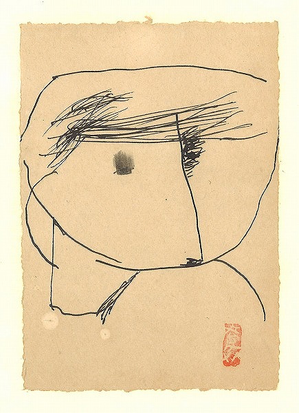 松本竣介 Shunsuke MATSUMOTO 《顔(1)》 1947年頃 紙にインク、墨 イメージサイズ:9.5×9.6cm シートサイズ:13.8×9.6cm 印サインあり※『生誕110年 松本竣介展』図録(ときの忘れもの 2022年)p.22所収 No.7