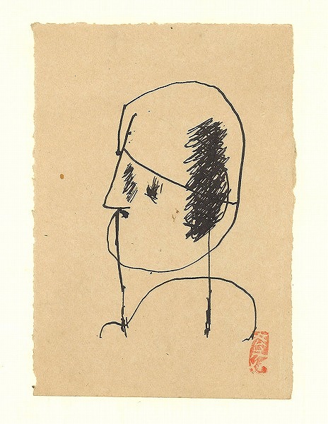 松本竣介 Shunsuke MATSUMOTO 《顔(2)》 1947年頃 紙にインク イメージサイズ:9.5×6.8cm シートサイズ:13.5×9.5cm 印サインあり※『生誕110年 松本竣介展』図録(ときの忘れもの 2022年)p.22所収 No.8