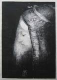 綿貫さんとのお付き合いは40年近くにもなるが、私がニューヨークで商社マンとして仕事をしていた時に当時の版画センターにメクセペルの小品を注文したのが最初だったかと思う。その後、時にはコレクターとして、時には共同エディターとして、時には同志・友人として等々、親しくお付き合いをいただき、現在に至っている。そのことを語り出すと紙面がなくなるので、さっそく本論に入ることにしたい。 私のコレクションの原点はニューヨークで出会い、私の版画コレクションの師ともなったインテリ画廊主のアンディ・フィッチ(Andrew Fitch)氏(Fitch-Febvrel Gallery)にあるが、彼が一番熱心に扱い、プロモートしていたのがオディロン・ルドンであった。フィッチ氏のことは別の紙面に譲り、昨年偶然にも私のコレクションに加わったルドンの名作「光の横顔」に光を当てて、版画の複数性故の面白さや魅力に迫ってみたい。少しマニアックなアプローチだが、インターネット全盛の時代でもあり、関心を持っていただく方がいれば幸せだ。 オディロン・ルドン作「光の横顔」(Profil de Lumie`re)だが1886年に最初の単品作品として制作されたリトグラフである。暗闇のなかに頭巾をつけた女性が伏し目がちにおごそかにたたずむ姿は神秘的で美しい。私の大好きな作品である。バブルの時代にはとっても手が届く作品でなかったが、不景気のおかげで私のコレクションに加わった。 作品の詳細を述べるとイメージサイズ34.2x24cm シートサイズ 46x33cm(一部トリミングがあるようだ。MOMAのものより大きいが・・・)、シーン・アップリケといわれているが、薄いチャイナ紙に摺られ、台紙に貼り付けてある。イメージの左下部分の台紙にタイトルと限定部数の記載(PROFIL DE LUMIE`RE, a' 50 Exemplaires)があり、イメージの右下すぐの台紙部分には摺り工房名(Imp. Lemercier et Cie, Paris)が書かれている。また、作品の頭巾部分に鉛筆による署名(ODILON REDON)がある。メルリオが著したカタログレゾネによれば、第2版であり、50部限定で1986年にデュモン社から出版されたようだ。では初版は?ということになる。レゾネには初版の写真が掲載されているが、この作品との違いは頭部の部分に蝶のような白っぽい汚れがあり、摺りも50部限定に比べ、荒れている感じだ。(直接見ていないので正確には分からないが)レゾネでは初版は流通してないとある。しかし、オークションや画廊で初版といわれる作品と同じく頭部に白い汚れがある作品をしばしば見かける。レゾネでは石版は消去(キャンセル)されたとされているので、謎が広がる。まずカタログレゾネだが、どんな作家のレゾネでもすべてが正しいとは限らない。抜けている作品があるとか、限定部数が異なっているとかは日常茶飯事だ。レゾネの記載事項は少し疑ってかかる方が賢明だ。あくまで参考と考えよう。 最近はインターネット時代で、版画もネットで販売されるし、また、世界の有名美術館は版画に至るまで所蔵作品をホームページに掲載してくれる時代となっている。日本では岐阜県立美術館が昭和57年頃、安宅コレクションをまとめて購入したこともあり、最大のルドンコレクションを誇っている。ネットでコレクションも公開されている。世界を見渡すと、シカゴ美術館(AIC)のルドンコレクションは充実している。ルドン夫人に残された作品を一括してコレクションされた経緯があり、信頼性が高い。シカゴ美術館を含め、大英博物館、ニューヨーク近代美術館(MOMA)、フランス国立図書館にもルドン作品が納まっており、版画も含めネット上にコレクションが公開されている。 今回、ネット上に公開されている「光の横顔」の写真を取り込み、入念に比較・研究してみたが、版画コレクションの新しい楽しみ方、また面白みにつながるアプローチように感じた。その結果で判明したことを記してみたい。 @第2版といわれる50部限定作品が基準作品として扱われている。(同じイメージの木炭画が残されているが、当然、頭巾の上の部分には白い汚れはない) A第2版でも頭巾部分にサインが入っている作品と入っていない作品がある。 Bメルリオでは初版とされる作品と同じ図柄で有名な刷師クロ(Clot)刷りとフラピエ版(Edmond Frapier オークション情報では50部限定のほかにフラピエによってリプリントされたとある)が存在しており、限定部数は分からぬがけっこう流通している。 ルドンは転写紙を使ってリトグラフを作ることをファンタン=ラトゥールから学んだようだが、自由に描けることや書きためた木炭画を複製しやすいことから、たいへん気に入って、もっぱら転写紙を使ってのリトグラフ制作に専念した。転写紙を使用することは、石に直接描くより簡単と思っていたが、技法書を読むと決して簡単でなく木炭画の黒をしっかり石版に写すには刷り工房職人とのコラボが必須であり、ルドンは職人とともに相当努力したようだ。あとは私の推測だが、本来の初版はシカゴ美術館にある作品(サインが