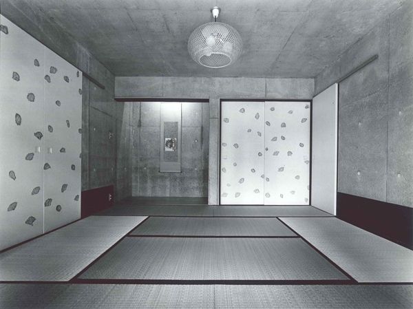 磯崎先生の年譜をみると、中上邸の設計、施工の時期は[MoCA(ロス・アンジェルス現代美術館)][つくばセンタービル]と重なり、世界の建築界にその名を轟かせていきます。多忙な中、磯崎先生は自ら足を運び、越前和紙を使っての和室のふすまのデザイン、紙漉きにも楽しそうに取り組まれていました。