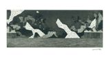 つねに数と数の関係性に惹かれます。 あるものとないもの、 見えるものと見えないもの、 地と図、 その均衡をどこか 保ちながら崩したいし、崩しながら保ちたいと思う。 つまり運動を触発し、その変化の中でかすかに感じる 本質的な何かにスポットライトを当ててみたい。 例えば、都市は生命体の如くうごめいている。 多様な要素があちこちに転がっており、 それをどのように感知するかは、個々のセンサー次第。 しかし、確実な何かが我々の中に少しずつ蓄積していく。 記憶と記録。 その時に僕は過剰であるということを 一つの基準にしている。 やり残すのではなく、桁外れにやりきること。 過剰さの海の中に手を突っ込んで欠片を拾い集めたい。 具体的にはこの銅版画を彫るという行為 そのものも過剰さの中から生まれるエネルギーに支えられている。 そして、 この過剰さというのは作品全体に漂うのみならず、 作品のディテールにもエッセンスとして宿ることを心掛けている。 (こうしま ゆうすけ)