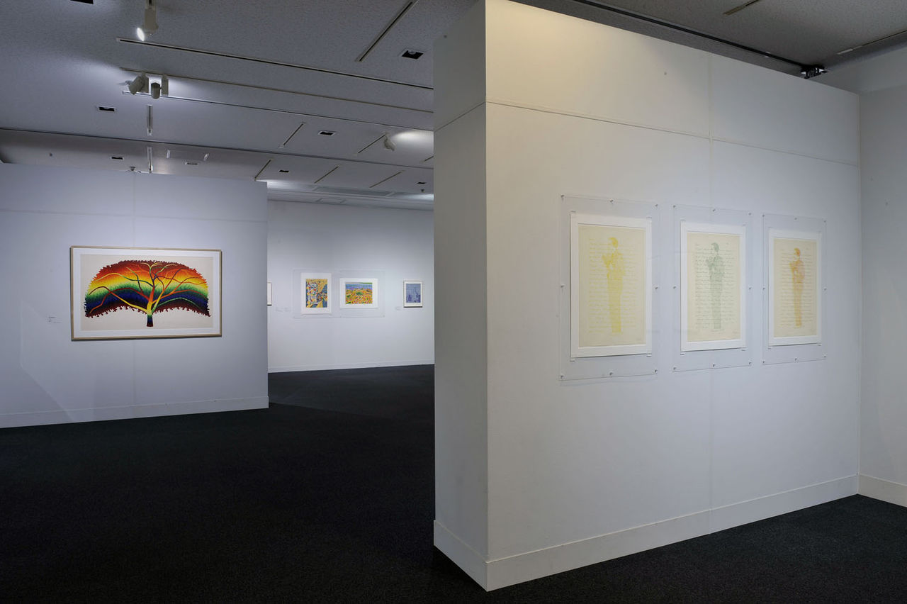 「版画の景色―――現代版画センターの軌跡」展 会期:2018年1月16日〜3月25日 会場:埼玉県立近代美術館 50人近い作家による、270点あまりの版画が並ぶ会場である。多彩なのは版画史を追う作品群だからではなく、ある一貫性を感じるのは結社的な主張をもつ作家たちの集まりだからでもない。1974年から85年にかけて存在した「現代版画センター」が、版画制作、展覧会や講演会の企画、刊行物の編集発行などのかたちで関わってきた、アーティストと作品なのだ。 そのような多彩と一貫性を引き立てるように設計された展示構成はとても気持ちがいい。ルートにせかされることも迷うこともなく、入口受付デスクと同室に飾られた靉嘔の「I love you」の連作から始まってオノサト・トシノブや関根伸夫などの魅力あふれる「景色」にうっとりしているとその先に磯崎新の巨大な立体作品「空洞としての美術館」が待ち受けている。そこからあとはどの順序で見ても構わない花園みたいになっていて、どの作家にも初めて対面するような新鮮さがある。出口近くで、草間彌生とアンディ・ウォーホルが立ち上がる。その外に、関係資料のコーナーも用意されているが、特別出品としてジョナス・メカスの短篇映画「自己紹介」が上映されており、見逃したら大損だ。全部で3時間くらいを考えておくべきだと言うひともいる。名前に馴みがないがじっくり見たい作家も少なくない。] ![]() 現代版画センターが関わったアーティストはおよそ80人、作品は700点を超えるらしい。だから今回、展示に際しては大胆な編集が行なわれてかえってよい結果にいたったようである。センターの主宰者である綿貫不二夫は作品および関係資料の使用に全面協力を惜しまなかったが企画とその進行にはいっさい口出ししていない。関与を積極的に謝絶している。理由はカタログを読めば分かるが、理由がなくても自分の仕事のレトロスペクティブには関与しないのが賢明だと、埼玉の展示会場と図録(テキスト・ブック、ヴィジュアル・ブック、アトラスの、判形・製本仕様の異なる3分冊でケース入り)とに接すればすぐ分かる。当事者の思いが干渉しないのでとても透明。第三者の思いが充満して灼熱状態。ほかに思い当たる例がない会場の空気は、ただの作品展ではないことで、それは一隅に置かれた何冊ものファイル資料からも感じとれるのだが、作家や作品の厖大な数を超えて迫ってくるものがある。その数とは日本全国津津浦浦の「地方」である。 図録のアトラス篇に、「現代版画センター・主要活動拠点分布図」というダイアグラムがある。1974〜85年に版画センターの自主的分室として名乗りをあげ、版画普及の道を拓いた各県内のギャラリーその他の会場の分布を表したものだが、北海道から沖縄まで、訪ねた記録がないのはわずか4県のみで、43都道府県に綿貫や同行のアーティストたちが足跡を残しているのだ。版画は複数つくれるアートだから同時期に各地域で出来たばかりの作品を中心にした展覧会やオークションが可能だという、じつに単純な発想を実行に移したいきさつは、今回の企画展示と図録が語りつくしている。活動というより10年間にわたる組織的運動になってしまっているのだ。驚くほかはない。そこに確かに生起したにちがいない連鎖反応の現実感。 いま日本の大都市部では1年を通じて数えきれないほど多くの企画展が各美術館その他の場所で行なわれている。対応できないほどだ。国内だけでなく海外の美術館からも惜し気なく貸し出された作品が次々とやってくる。その目玉作品を強調する文句がどこでも決まっていて、「ついに来た、あの名作が実物で!」。近現代の美術ならとくに、「実物」を置いてそれを見に来させる地理的位相は、日本の中央と地方、西欧と日本の関係に重なる。これら「実物」は客人として遇され、やがて去っていく。忘れることなく会期中に見に行かなければというあせりのなかに、その作品がある。それはどういう現実感なのか。 いかにも地方らしい地方の町や村を選び、そこに住む人々にアポなしでいきなりカメラを持ちこみ話しかけて取材するテレビ番組がある。そこで歴然とするのは、子どもから年寄りまで例外なく知的であることだ。率直さとユーモアを兼ね備えている。だから番組になりうるのだろう。この「地方」が大都市圏に近づくほど、人々の反応は弱く、しつこい。現実が希薄になり混濁する。それが大都市における生活だ。綿貫不二夫とその仲間が富山の薬売りのように訪ね歩いていた当時の地方の空は自分の光で晴れていて、そこで版画を見ること、買うことはすぐ自然の営みになった。 全国に張りめぐらされたその「地方」は中央との位相を逆にした。その本来の位相は、埼玉県立近代美術館の担当学芸員および関係者の情熱と持続力によって目に見える展示と記録になった。その作業のめざしたところはあくまで版画そのものの「景色」なのだ。 (2018.2.23 うえだ 